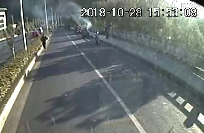 10月28日下午時(shí)許,大江東車隊(duì)733B路司機(jī)童志祥駕駛公交車行至新城隧道北口附近時(shí),突然發(fā)現(xiàn)一輛裝滿貨物的電動(dòng)三輪車發(fā)生自燃,濃煙滾滾,火光沖天。電動(dòng)車車主焦急萬(wàn)分,站在路邊無(wú)助的求救。于是童師傅童師傅當(dāng)機(jī)立斷,馬上拉起手剎,將車停靠在安全區(qū)域,在向車內(nèi)乘客做好解釋安撫工作后,迅速拎起車上的滅火器沖下車。