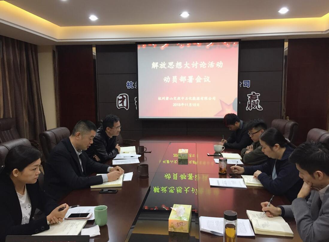 11月15日上午,交投能源公司召開解放思想大討論活動動員部署會議,公司領導班子、各部室負責人參加。會議由公司副總經理丁軼娜主持。