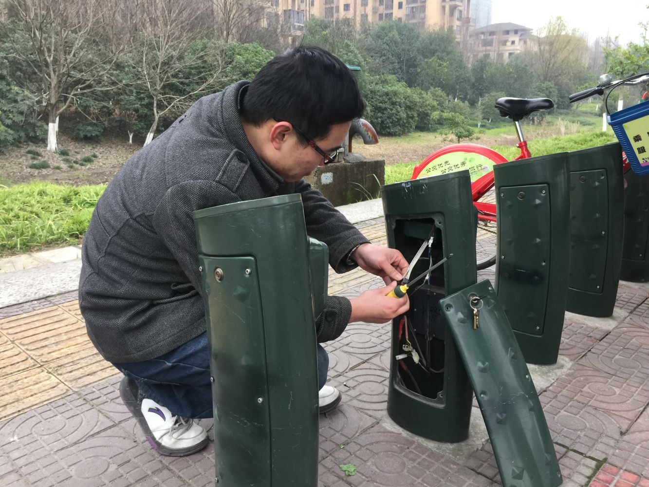 根據前期排摸了解,市心路幾大地鐵出入口停放下架車數量較多,因此,整治以該地段為重點,著力樹立停車樣板點,以點帶面,在市心中路沿線各個服務點開展工作。一是在各個服務點張貼告示信息,及時做好宣傳通知。二是針對公共自行車租還的潮汐現象,公共自行車管理部各服務點采用調運車實時調運模式,在平峰時段安排調運車輛進行沿途巡邏,保障租還車正常使用;此外還加強現場勸導力度,對前來租還車的市民耐心引導。