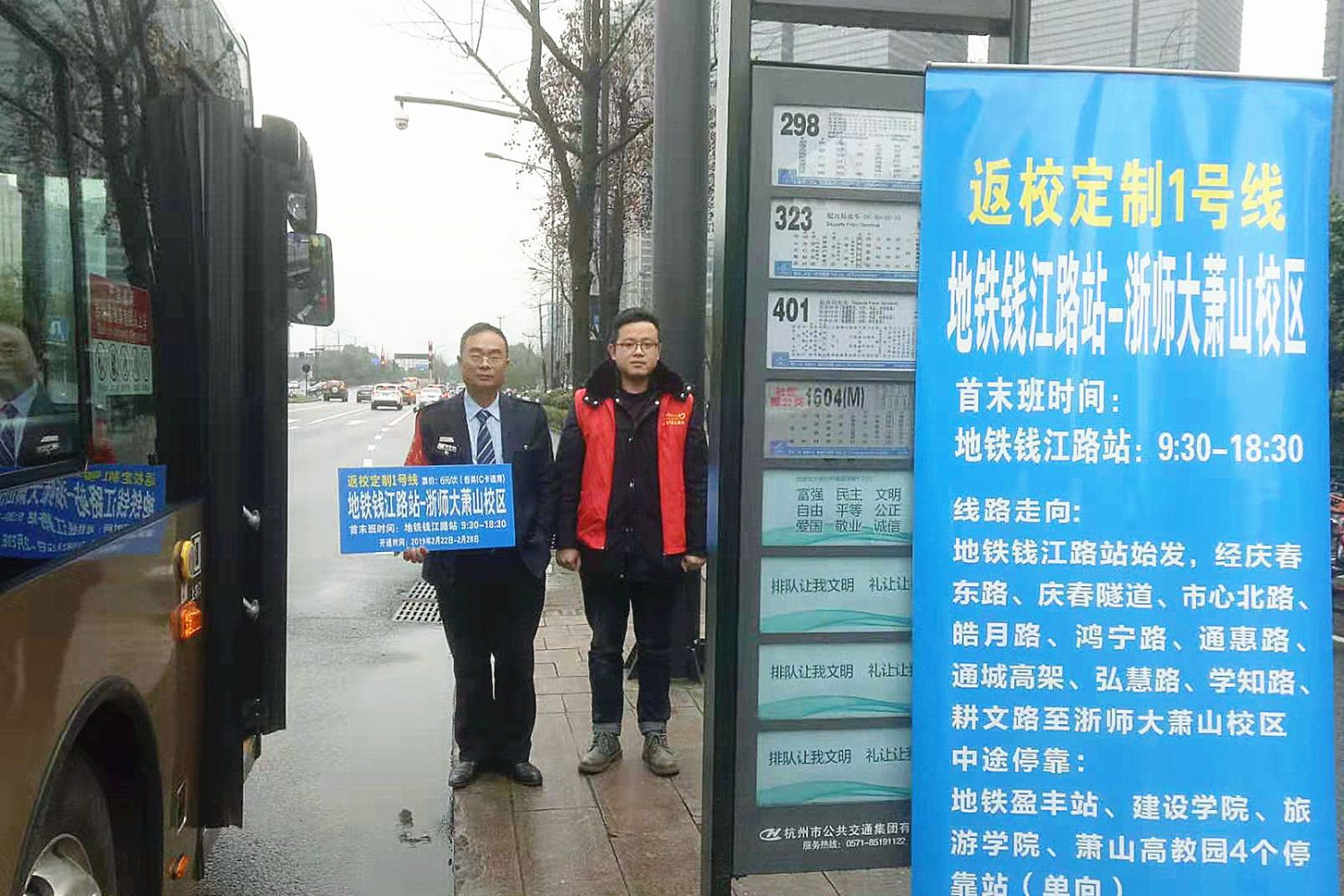 “不用多次轉車就能直達校區,省心省力,票價也不貴。”“這幾天陰雨不斷,光線不好,傍晚回學校還是乘坐定制線比較有安全保障,坐的也放心一些”“還好有志愿者引導著順利坐上了定制公交,一回來就感覺到了杭城的溫暖。”溫馨便捷的乘車體驗,讓高校學子們紛紛對返校定制線夸口稱贊。