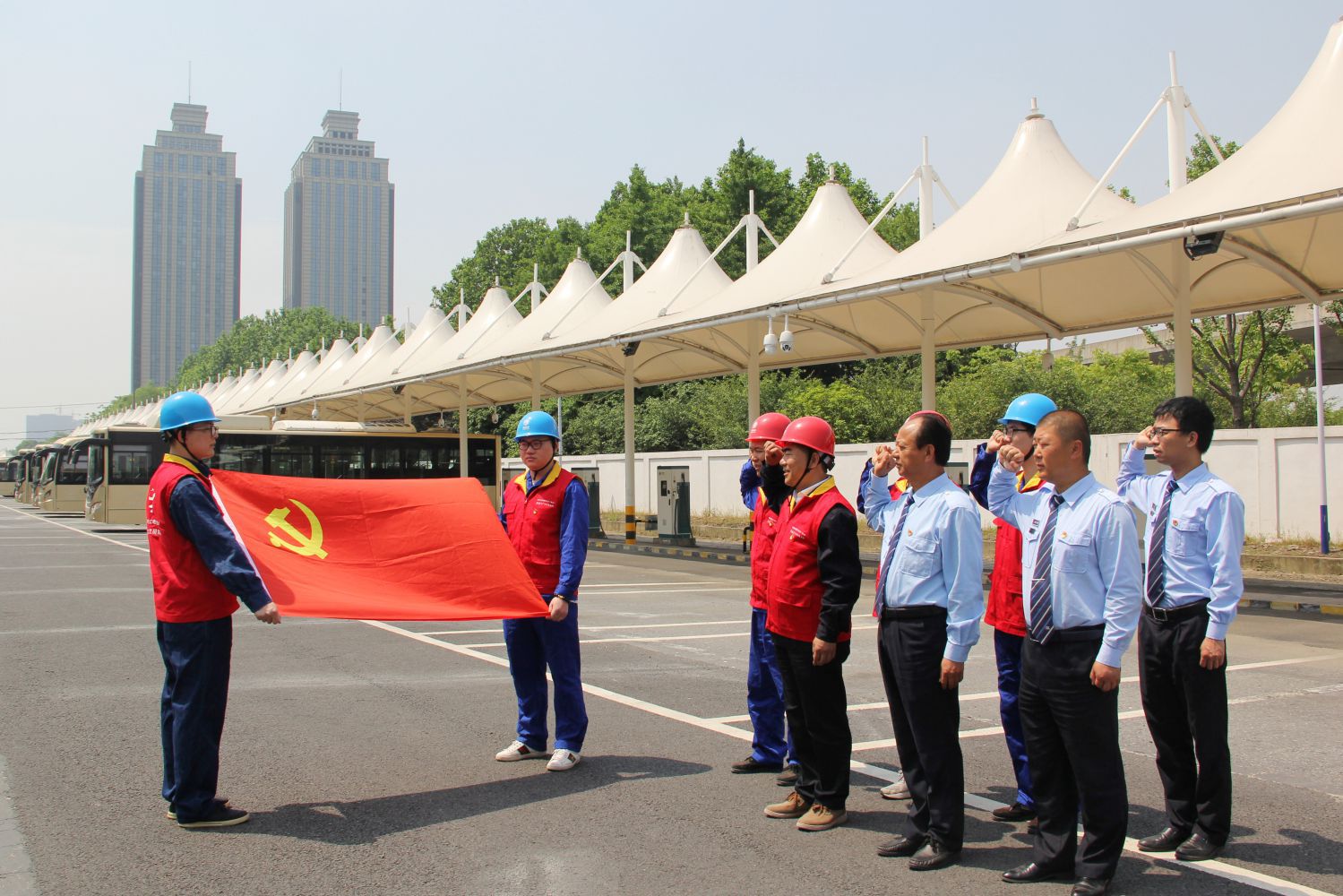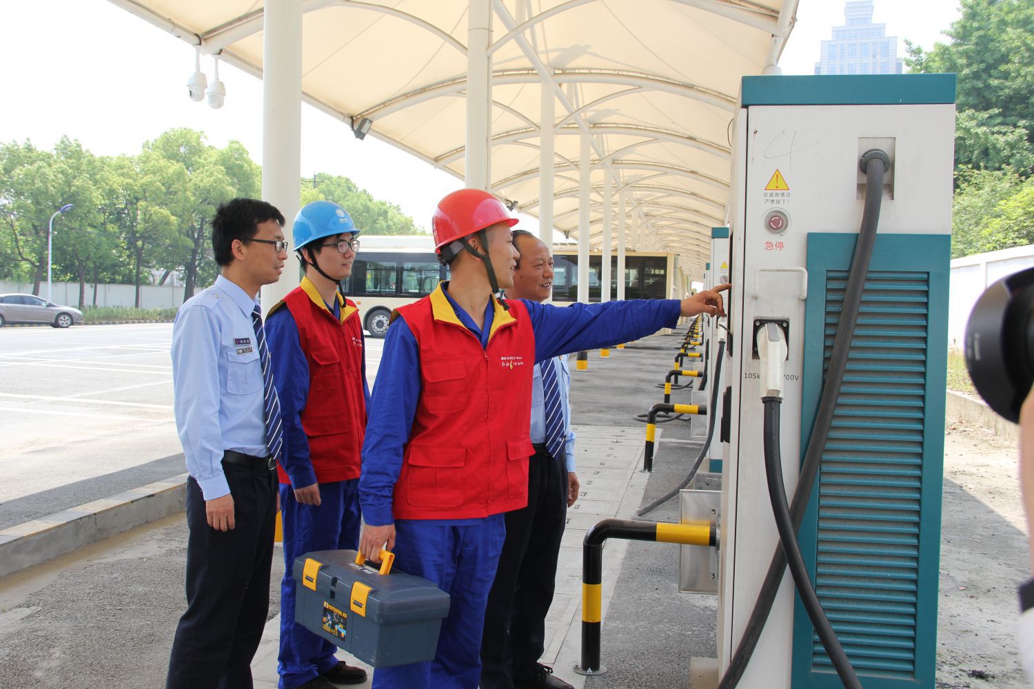 活動(dòng)中,雙方黨組織黨員代表首先來到蕭山公交鴻達(dá)路停車場(chǎng),在莊嚴(yán)的黨旗下重溫了入黨誓詞;供電公司客服綜合支部就車輛供電服務(wù)項(xiàng)目開展崗位特設(shè)實(shí)踐,針對(duì)車輛充電流程、配套安全防范措施以及定期檢修等內(nèi)容進(jìn)行了詳細(xì)的介紹。